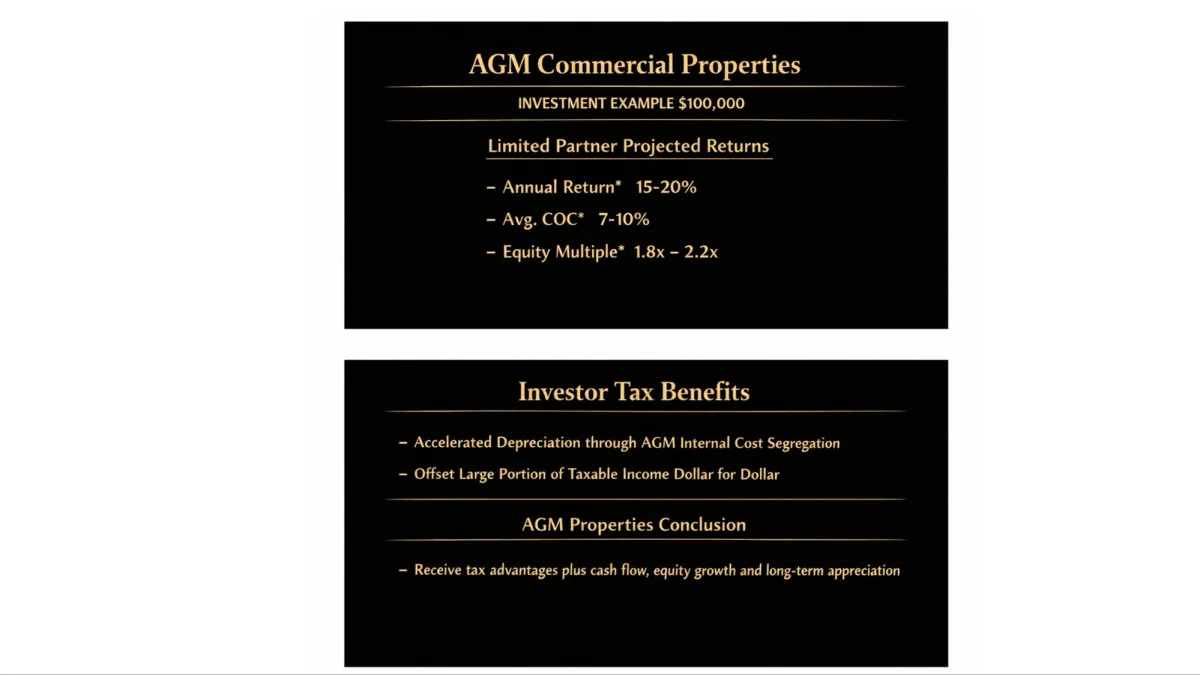AGM Commercial Properties is a Florida Panhandle based private real estate firm focused on offering investment partners, accredited, family funds, and institutional firms access to multifamily real-estate opportunities with 15%+ projected annual returns*. With over 5 years of corporate experience in land acquisition, multi-unit development, and value-add apartment rehabilitation & management. Through this end-to-end asset management approach. AGM Commercial Properties has met or exceeded investor’s expected returns since inception.